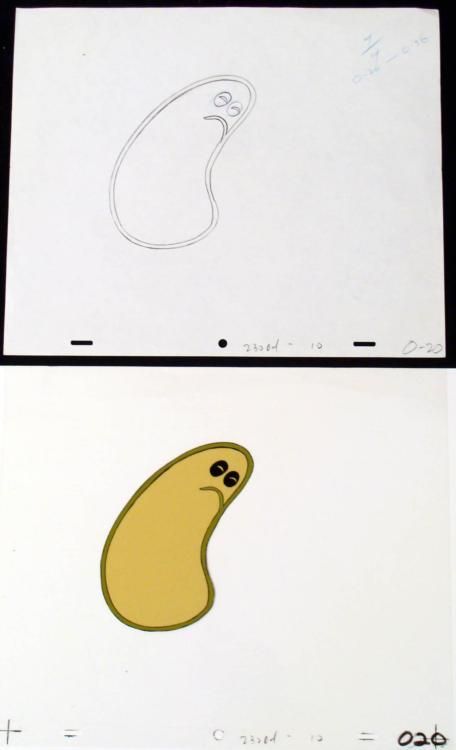 Gloop and Gleep are awesome hero * * * Original Animation Cel & DrawingMedium: Hand painted acetate celDetails: Animation notations and peg holes * * Original "rough" animation drawing, in non-photo blue and black pencil * * Size of cel: 10 1/2 x 12 1/2 inchesSize of drawing: 10 1/2 x 12 1/2 inches * * Condition: Very good * This is an original hand-painted cel set-up used in the production of the "The Herculoids." Each one-of-a-kind set-up represents a slight change in position of the characters. When individually photographed and projected in rapid succession, the images appear * to move. To created production cels, the original animator's drawing is transferred onto an acetate cel (by hand-inking and/or photo copying). The cel is then hand-painted on the reverse side. * * * * * Traditional animation is a multi-step process which includes various types of art techniques. Drawings are a key part of the process, in which the animator creates the design and movement of the characters. Drawings are then transferred onto acetate cels (by * hand-inking and/or photo copying) to create a production cel, which is then hand painted on the back side, using paint colors chosen and approved by the creator of the series.
