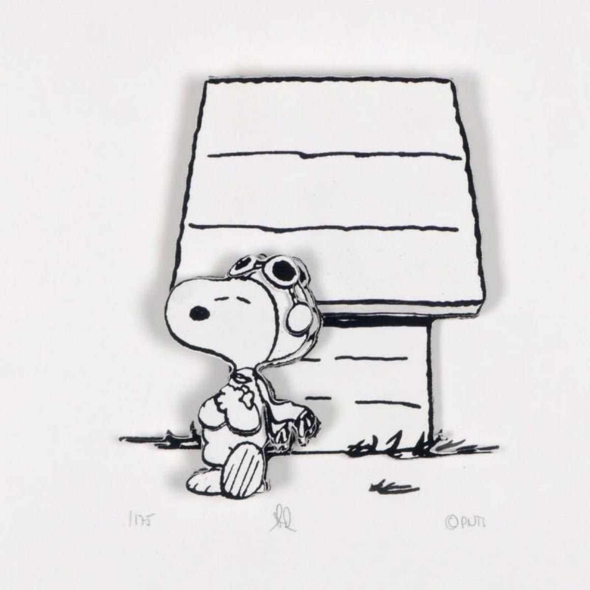 Hero by Peanuts. Created from the original artwork archived at the studio, "Hero" portrays the simple yet emotive art of Charles. M. Schulz, creator of PEANUTS. This 3D decoupage print on paper is hand numbered with Certificate of Authenticity. Measures approx. 15.5" x 15.5" (shadow box), 5" x 5" (image).