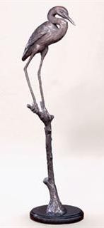 Heron On Branch Bronze Sculpture - 30.5"H 9.5"W - Great Attention To Detail - Beautiful Finish - Lost Wax Cast