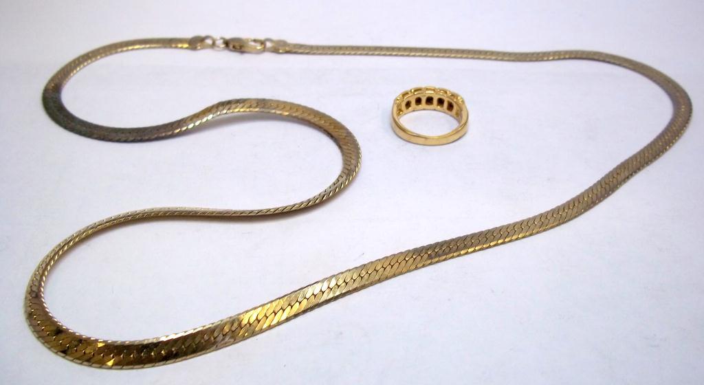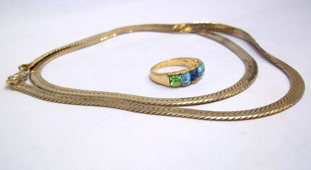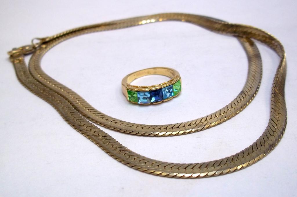 Herringbone Chain w/ 14K Gold Clasp, Costume Ring