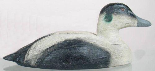 Herter Factory, Waseca, MN, "Ancient Wooden Decoy American Eider" eider drake decoy in XOP with a few surface rubs. See "Collecting Antique Bird Decoys and Duck Calls" pg. 209, for photo of this decoy. Provenance: Pitt Collection.