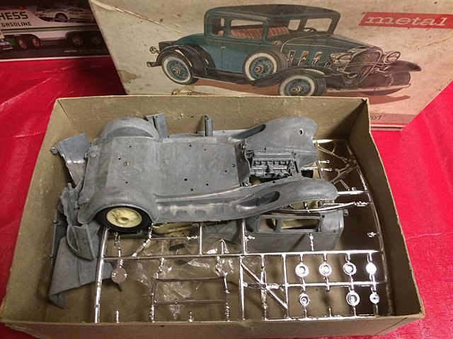 Collection of Hess trucks, approx. 16, and Vintage metal model kit, 1932 Chevrolet Couple by Hubley, from the farm estate