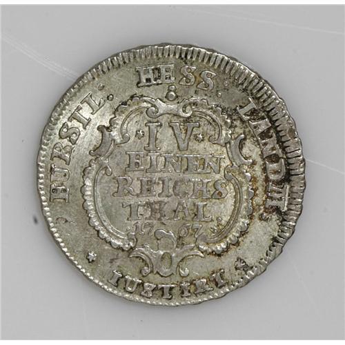 <B>Hesse-Cassel. Friedrich II 1/4 Taler 1767-FU, </B></I>KM469, nicely toned XF-AU, plus Hesse-Darmstadt 10 Kreuzer 1728-BIB KM148, choice lustrous AU.