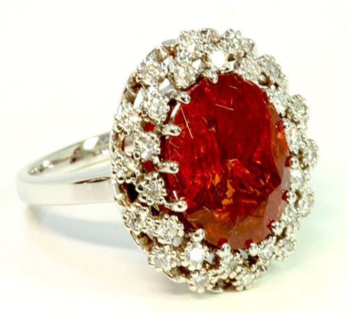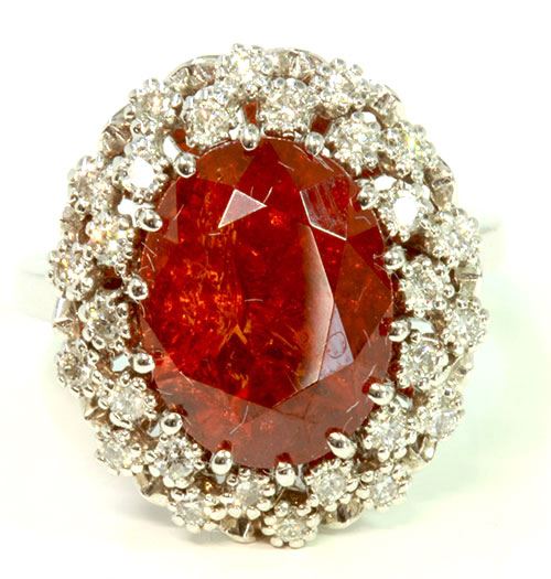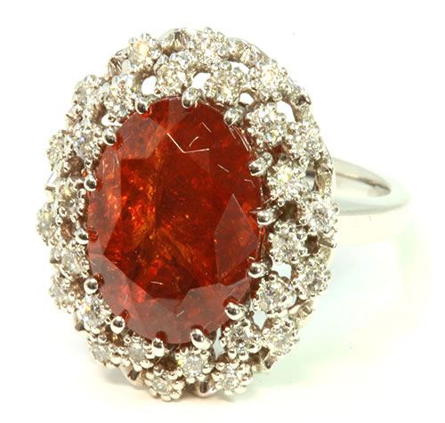 Hessonite Garnet 8.84CT / Diamond 0.47CT / 14K White Gold Ring 6.13 Gram