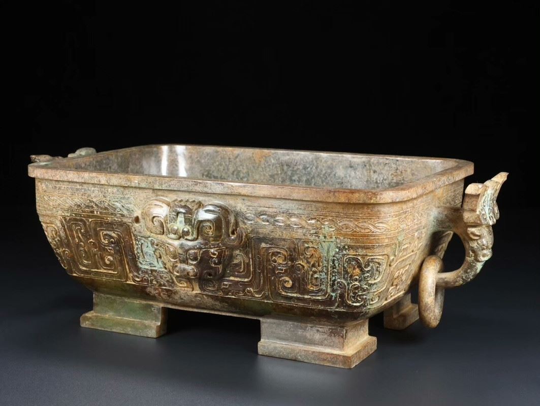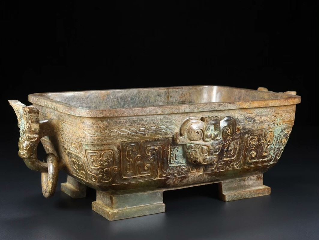 This Hetian jade incense burner features an ancient, elegant design with finely carved beast face motifs. The detailed engravings bring a sense of power and tradition, while the smooth texture of the Hetian jade and its natural color give the piece a unique charm, refined by time. The hanging rings on the sides and the ringed beast heads enhance the decorative appeal. Its simple yet graceful shape makes this incense burner both a functional item and a highly valuable art collectible, worthy of being treasured.