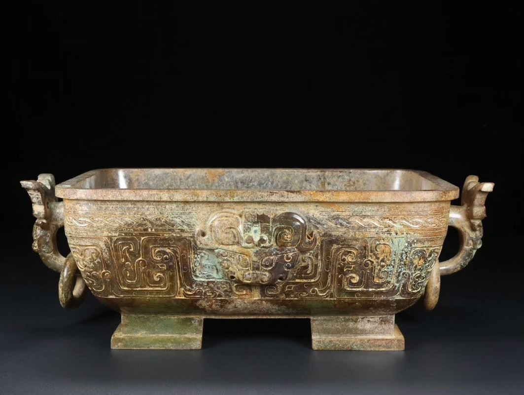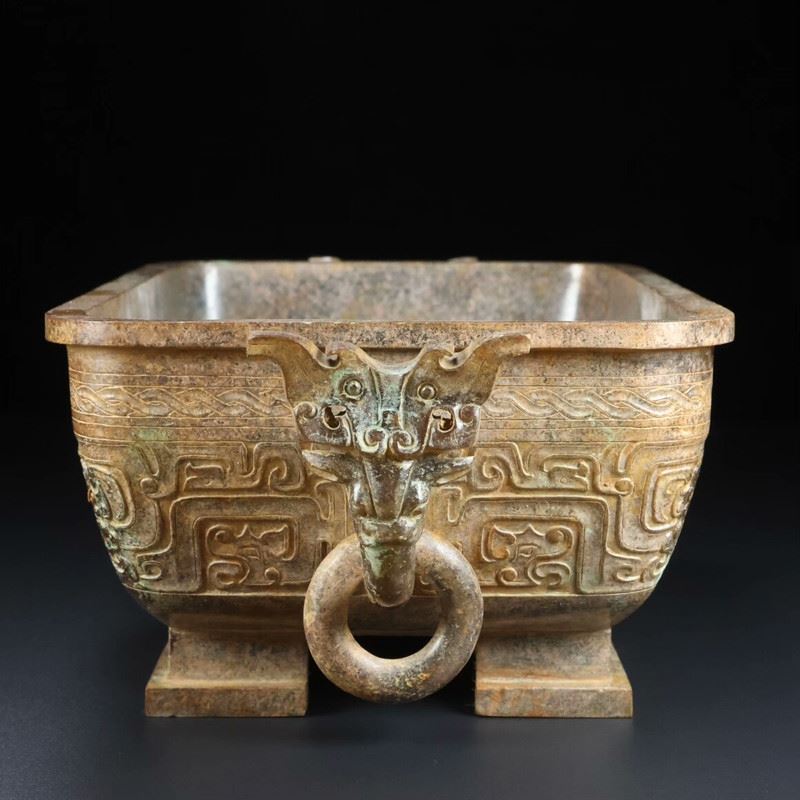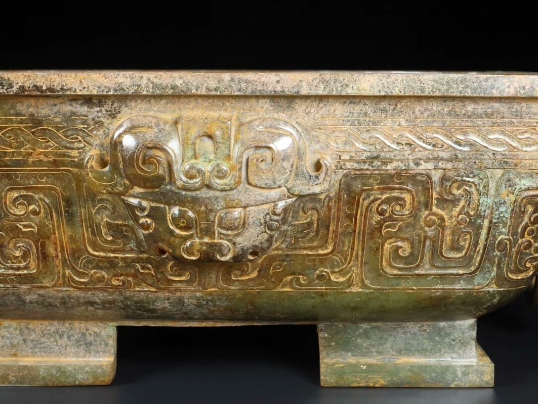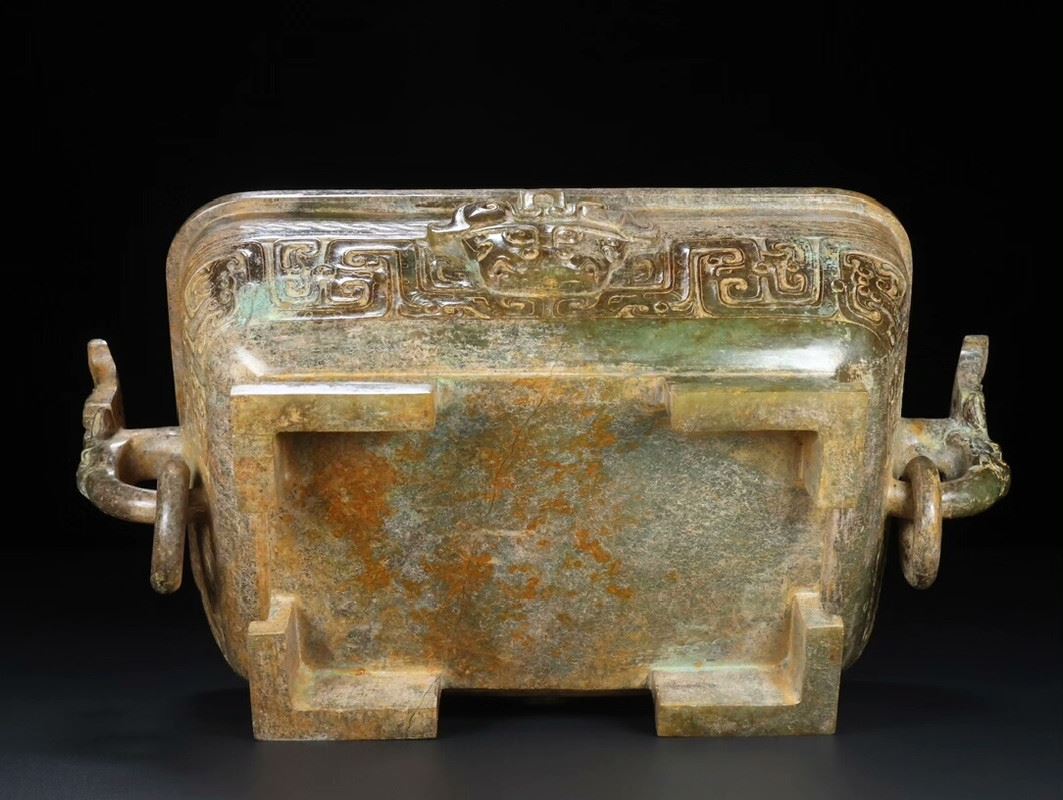 This Hetian jade incense burner features an ancient, elegant design with finely carved beast face motifs. The detailed engravings bring a sense of power and tradition, while the smooth texture of the Hetian jade and its natural color give the piece a unique charm, refined by time. The hanging rings on the sides and the ringed beast heads enhance the decorative appeal. Its simple yet graceful shape makes this incense burner both a functional item and a highly valuable art collectible, worthy of being treasured.