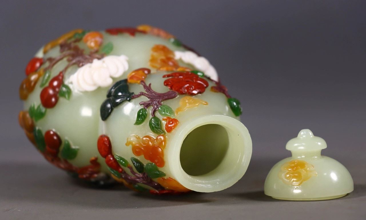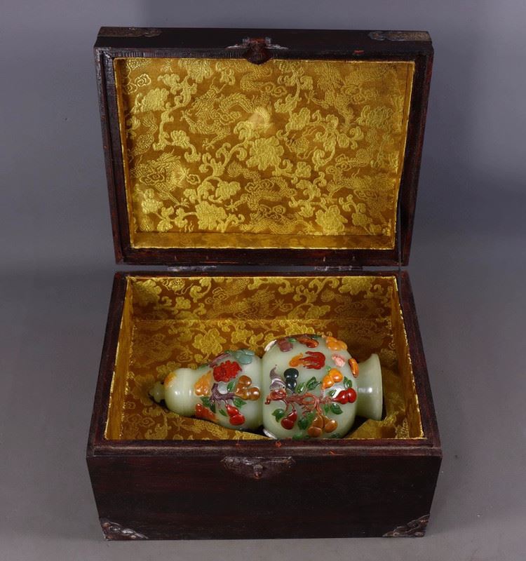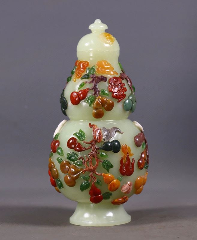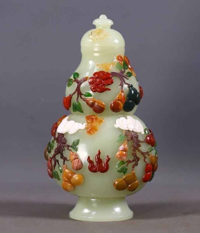 This Hetian jade gourd vase is meticulously crafted with high-quality Hetian jade, offering a smooth, lustrous finish. The vase features intricate inlays of the Eight Treasures motif, each detail rich in symbolic meaning, reflecting traditional themes of prosperity and fortune. The gourd shape symbolizes peace and harmony, while the Eight Treasures represent wealth and good luck. The design combines both artistic and collectible value.