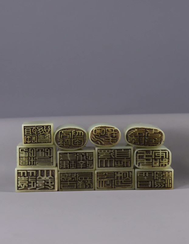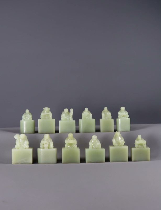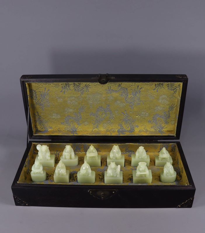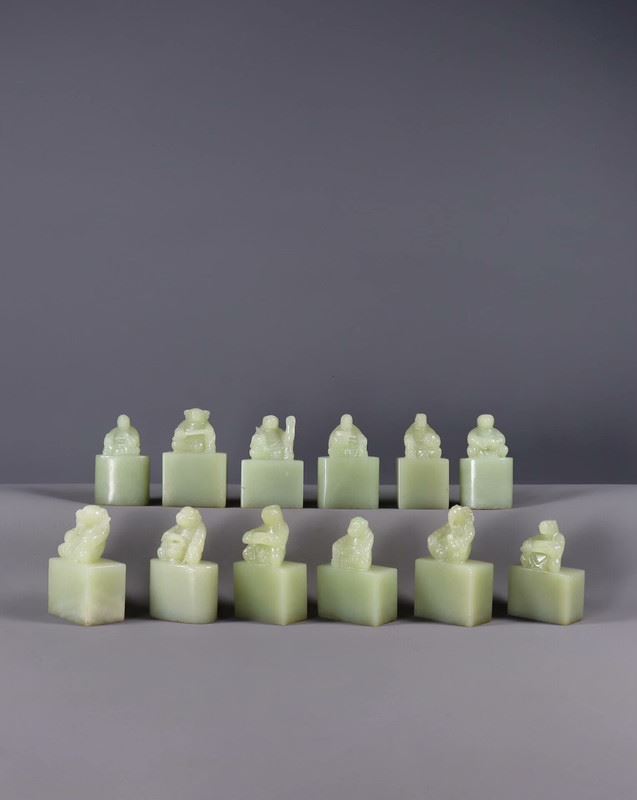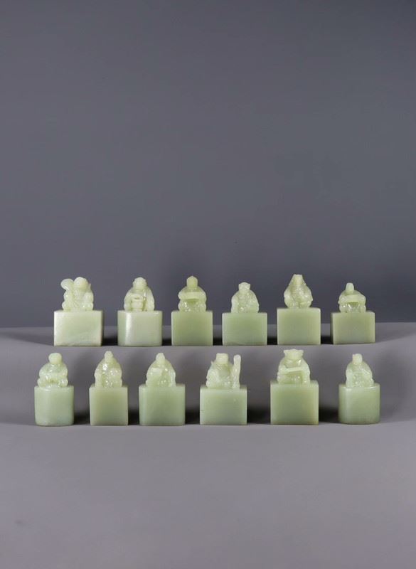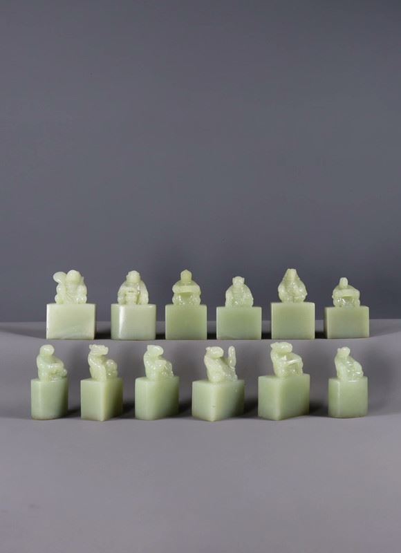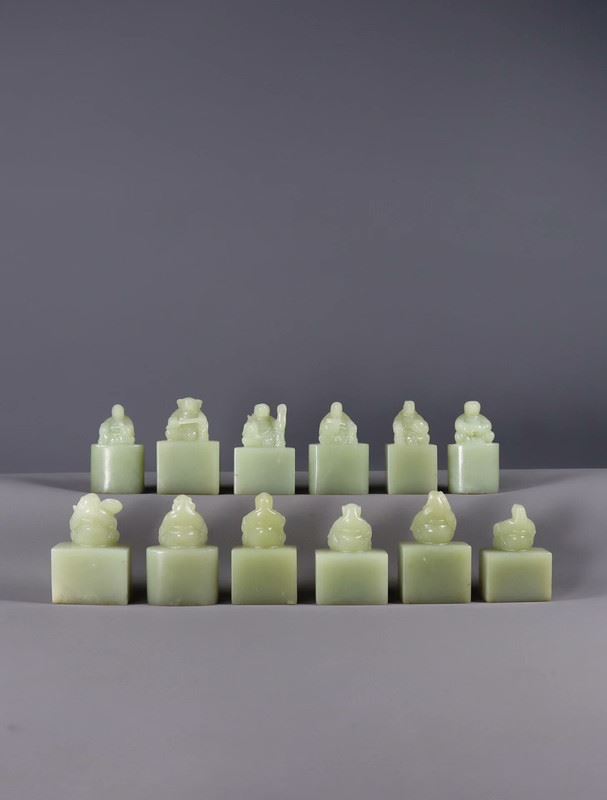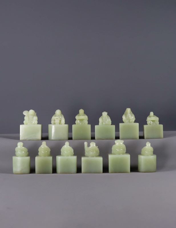 This set of Hetian jade seals features exquisite carving craftsmanship, with each seal representing a different zodiac animal, finely detailed and lifelike. The smooth texture and natural luster of the Hetian jade enhance the beauty of each seal, which is meticulously polished to create a soft, elegant glow. The intricate carvings capture the unique characteristics of each animal, and the overall design is both classic and rich in traditional cultural significance. This set of seals is both practical and highly valuable as a collectible artwork.