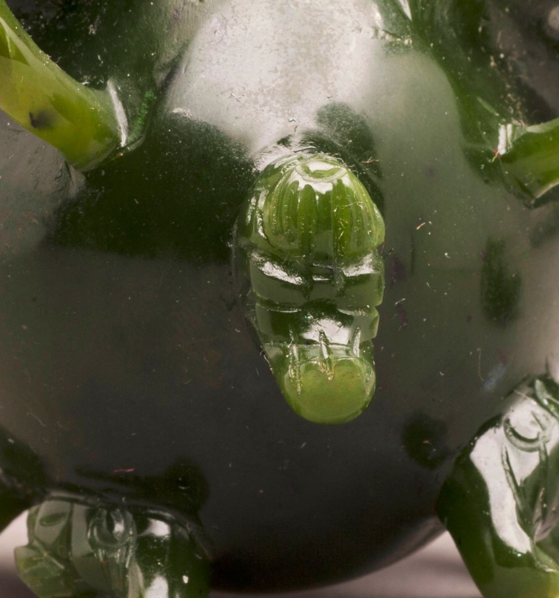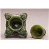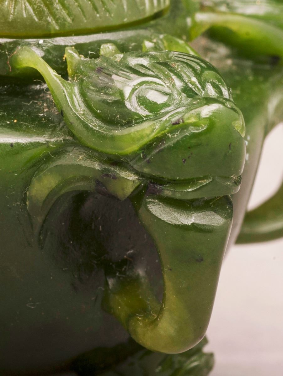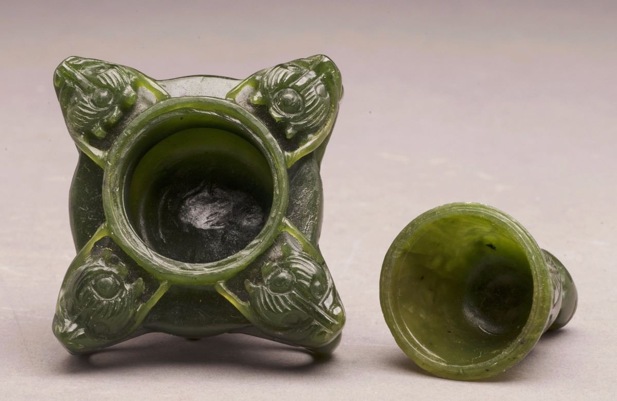 A Pair Of Fine Hetian Stone In Good Quality, Designed As The Form Of Two Vivid Incense Burner. Within The Alternative Green Tone Throughout. Craved In Extremely Detailed And Supported By Three Conical Legs At Bottom.