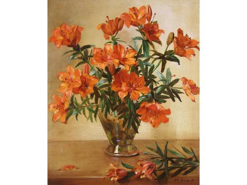 [Dutch 1877-1966] UNTITLED (STILL LIFE WITH TIGER LILIES) Oil on board 30 x 24 ins. -Signed Provenance: Estate of F.W. Haeseker