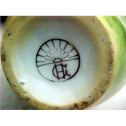 Heubach ewer with hand painted figure of a maiden feeding swan, Heubach mark on bottom, 7" high Estimate 160/300