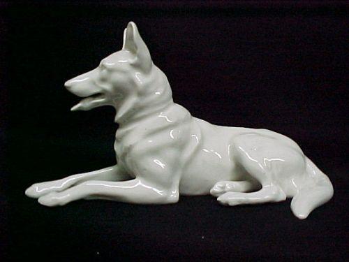 Heubach lying dog figurine; Heubach (Bros) mark on bottom; 4 3/4" high (no visible defects) Estimate 40/80"
