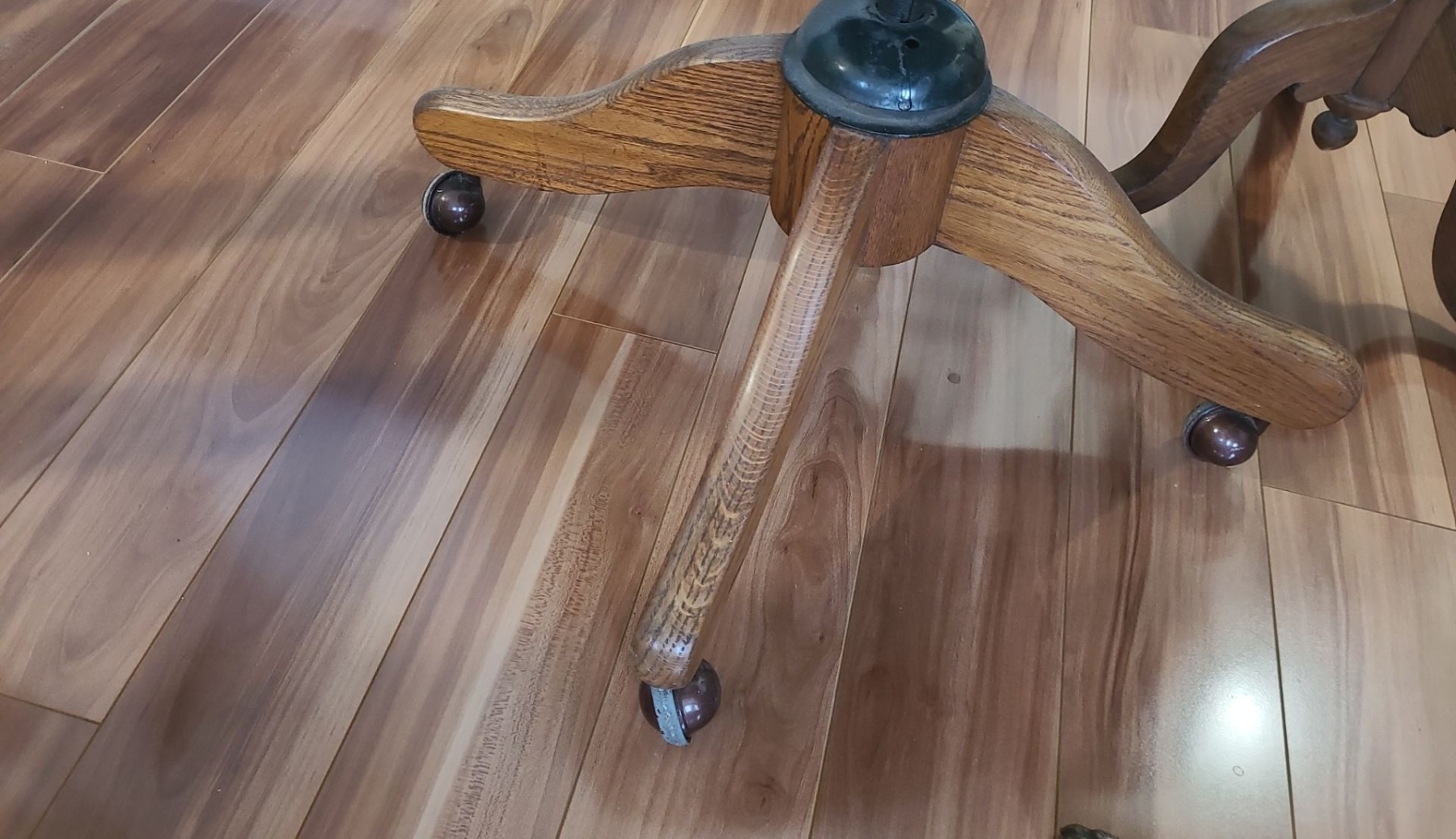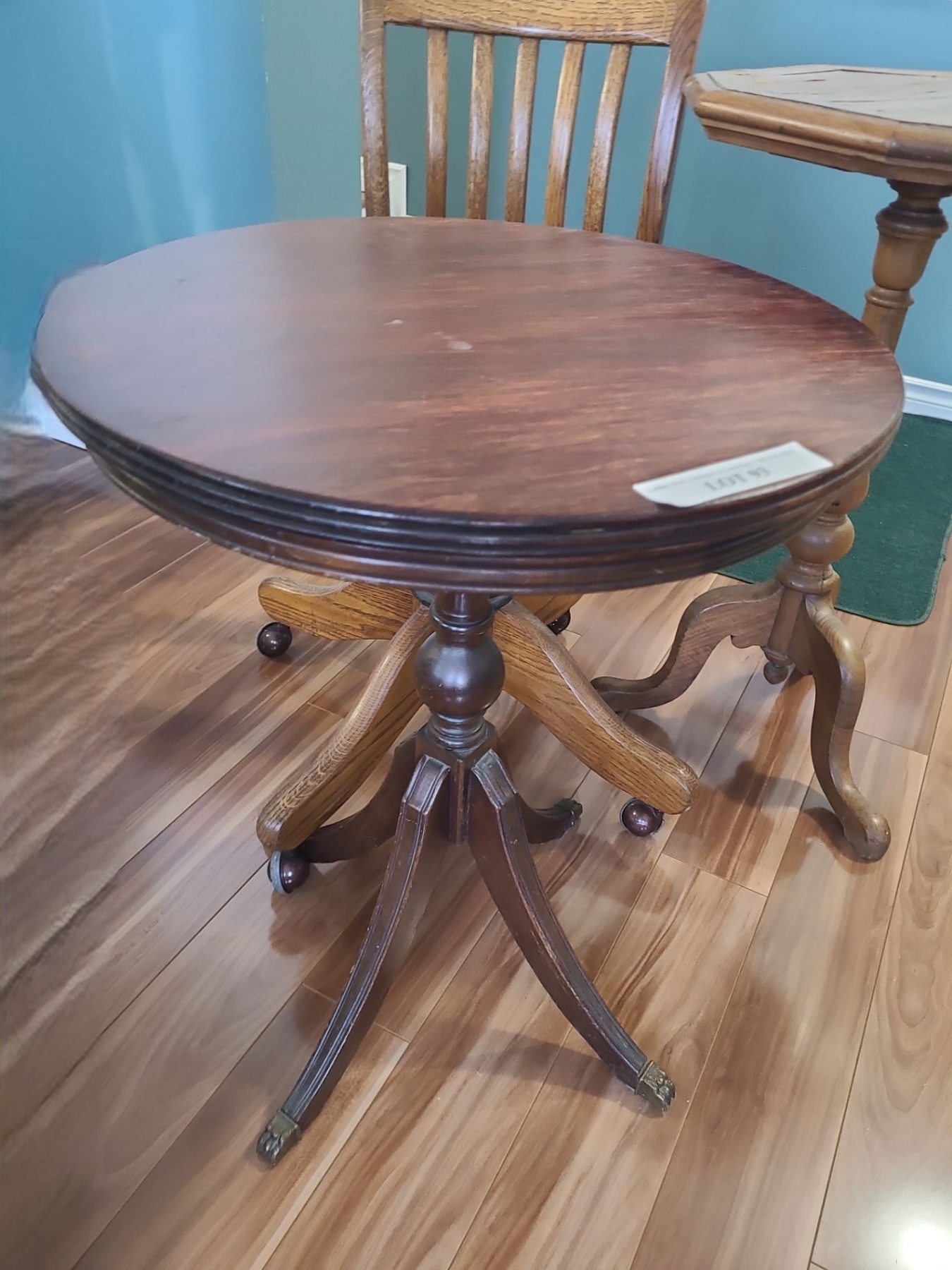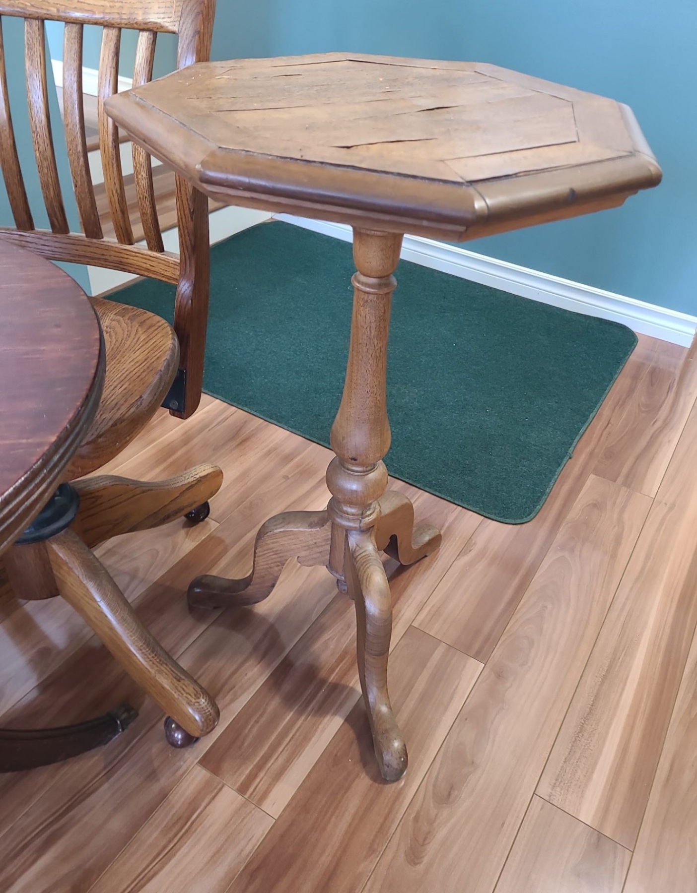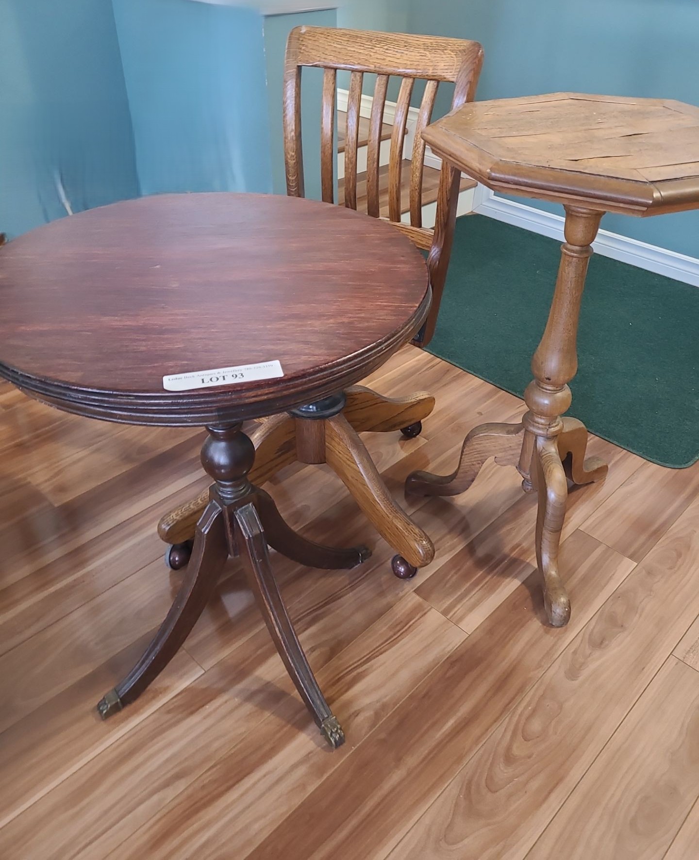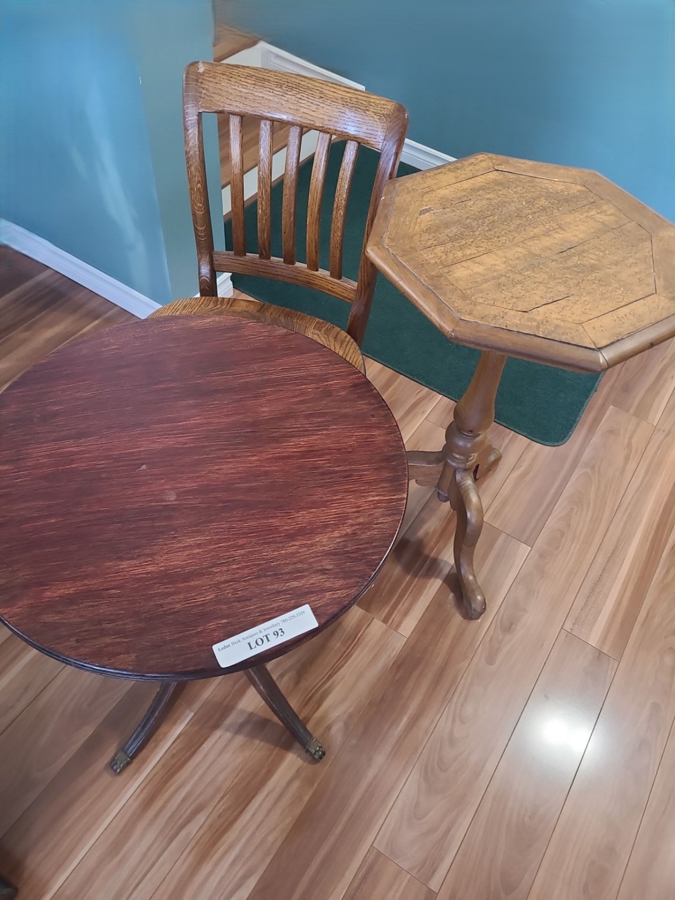 Incl Adjustable Oak Office Chair on Castors 16 w 18 d 32 h- Side Table Veneer Peeling as Shown