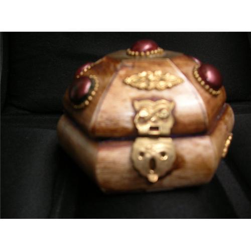 <tr><td>Title:Hexagonal Velvet-lined Horn Jewel/Vanity Box</td></tr>
