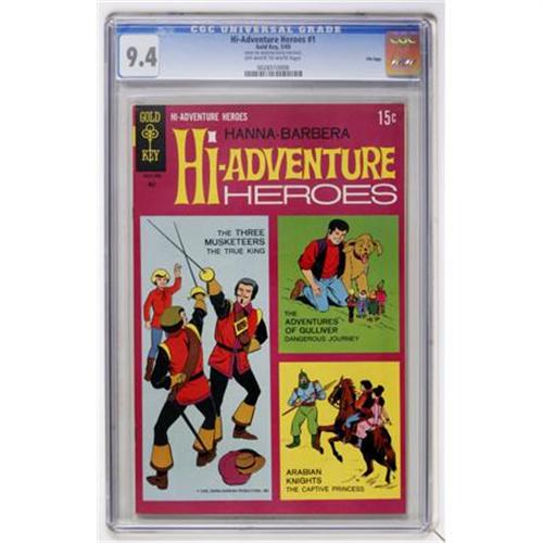 <B>Hi-Adventure Heroes #1 File Copy (Gold Key, 1969) CGC NM 9.4 Off-white to white pages.</B></I> Three Musketeers, Gulliver, and Arabian Knights appear. CGC notes, "From the Random House Archives." Overstreet 2007 NM- 9.2 value = $70. CGC census 6/07: 3 in 9.4, 6 higher.<BR><BR><b>Shipping:</b> Comics - Slabbed (certified) (<a target="_blank" href="http://www.heritageauctions.com/common/shipping.php">view shipping information</a>)