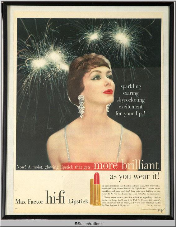 From The Max Factor Collection / Framed Hi-Fi Lipstick Advertisement 1958 from Seventeen / {11" L x 14" H}