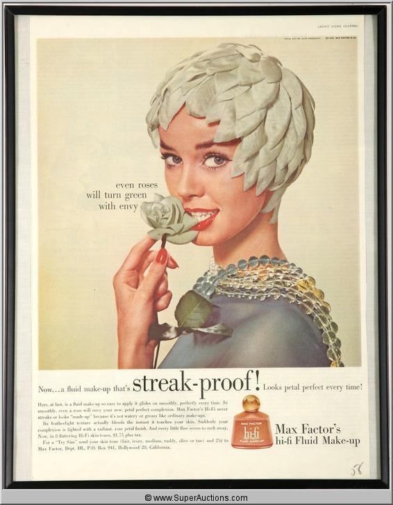 Framed Hi-Fi Make-Up Advertisement 1958 in Ladies' Home Journal from the Max Factor Collection {11" L x 14" H}