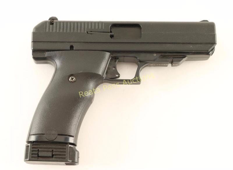 Anodized, polymer, single action, striker fired, detachable box fed magazine pistol with 4-1/2" barrel, one magazine. manual and magazine safety, 3-dot fixed sights and accessory rail. Metal finish is textured black with a little edge wear. Polymer finish is good. Bore is dirty with good rifling. Action works well. Condition is good. *Modern Firearm*