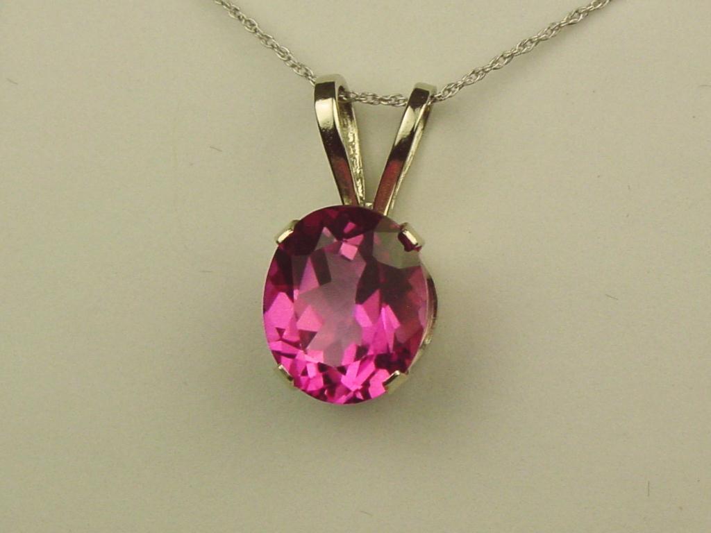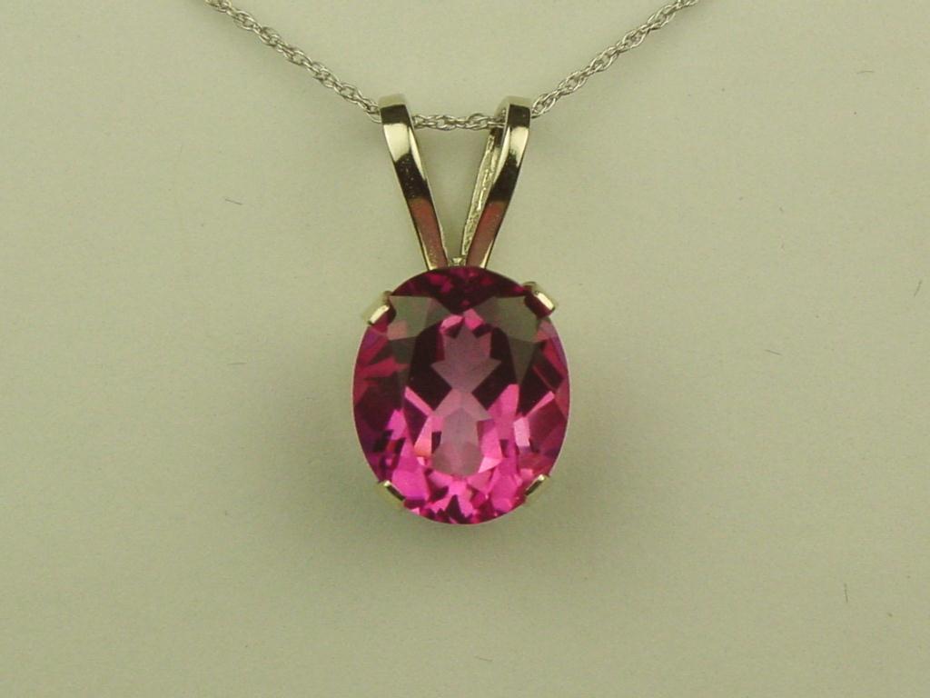 Hi-Quality 14K WG Ladies Handmade Pendant Fine set with an intense oval pink topaz weighing approx. 5.00 carats. Retail: $1,150.00Fine set with an intense oval pink topaz weighing approx. 5.00 carats. Retail: $1,150.00
