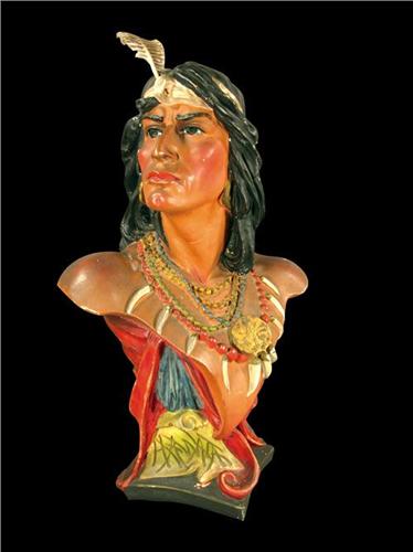 Hiawatha Cigar Store Indian Bust, chalk. Original paint with minor chips otherwise excellent condition. 28 inches tall.