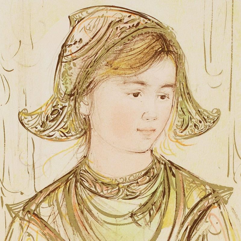 Wild lines and muted colors make Edna Hibel's art stand out in any room. "Helen" is a limited edition lithograph on paper, numbered and hand signed by Hibel. Includes Certificate of Authenticity! Measures approx. 12.5" x 19.5" (with border), 9" x 16" (image).