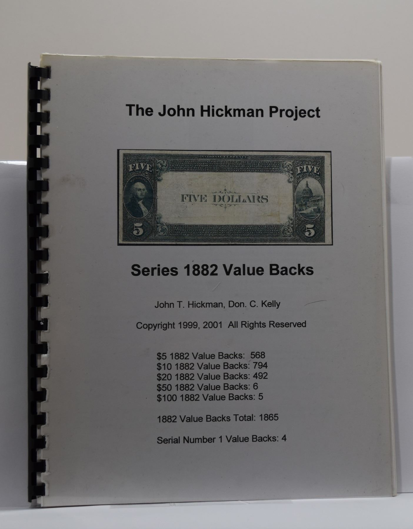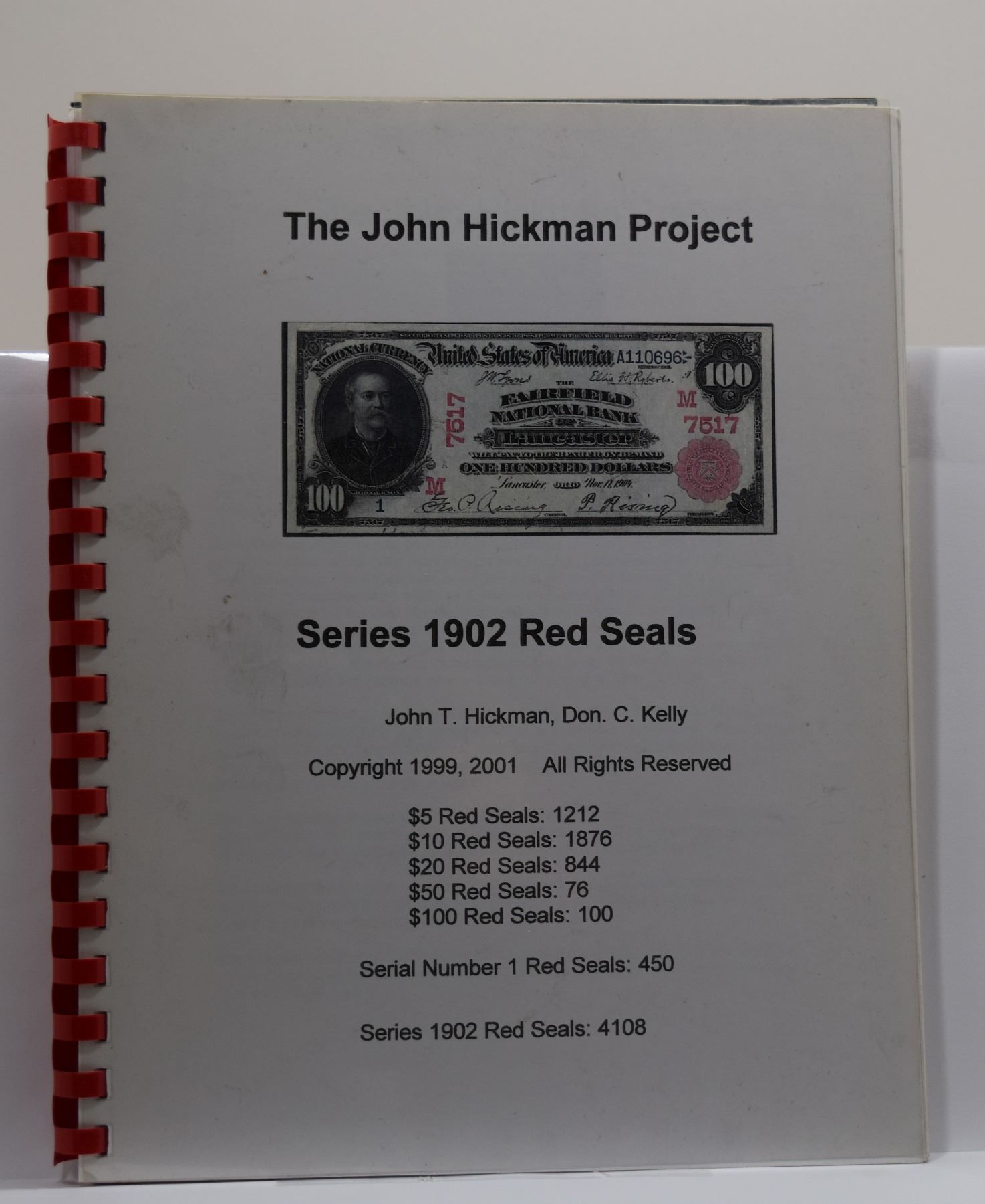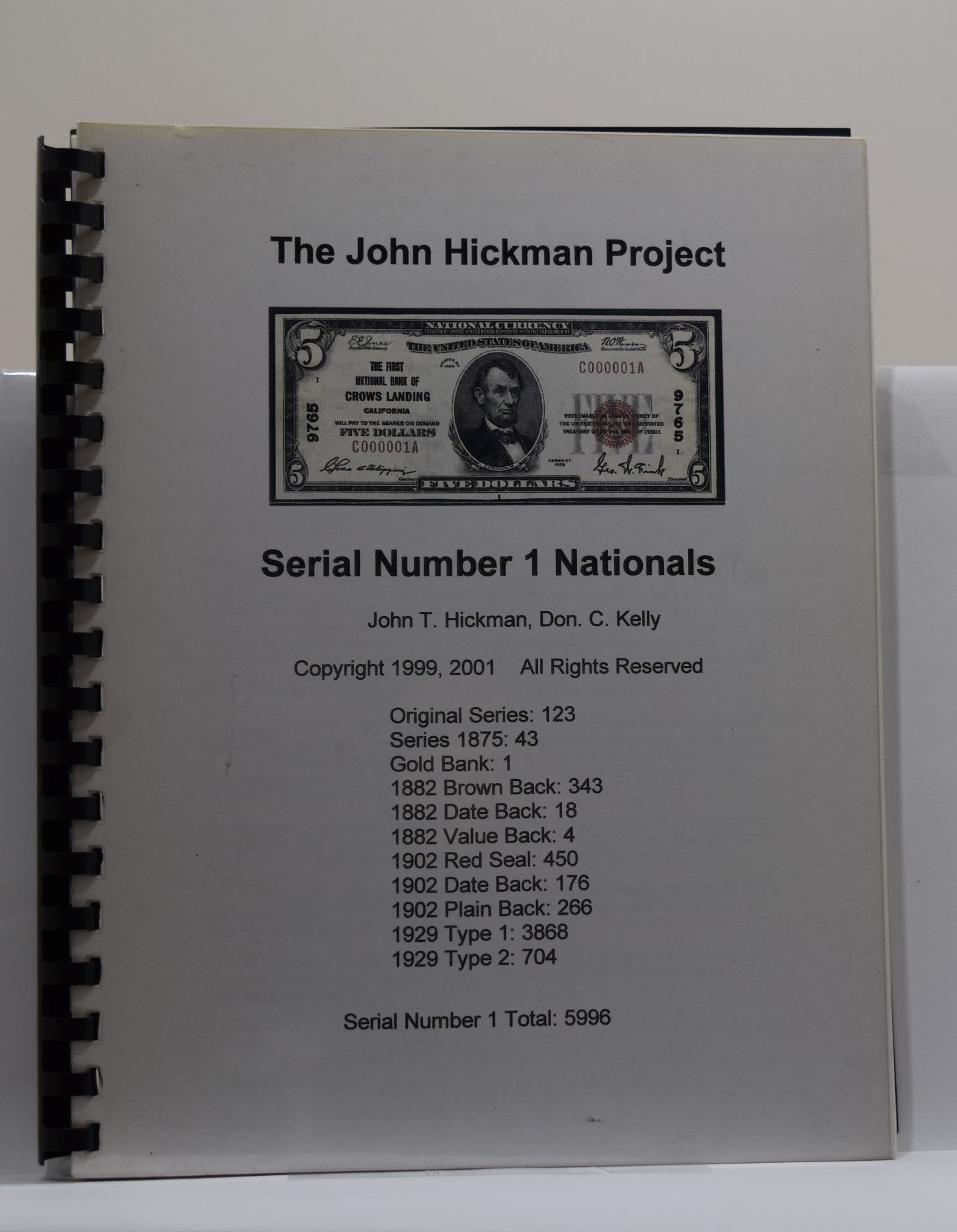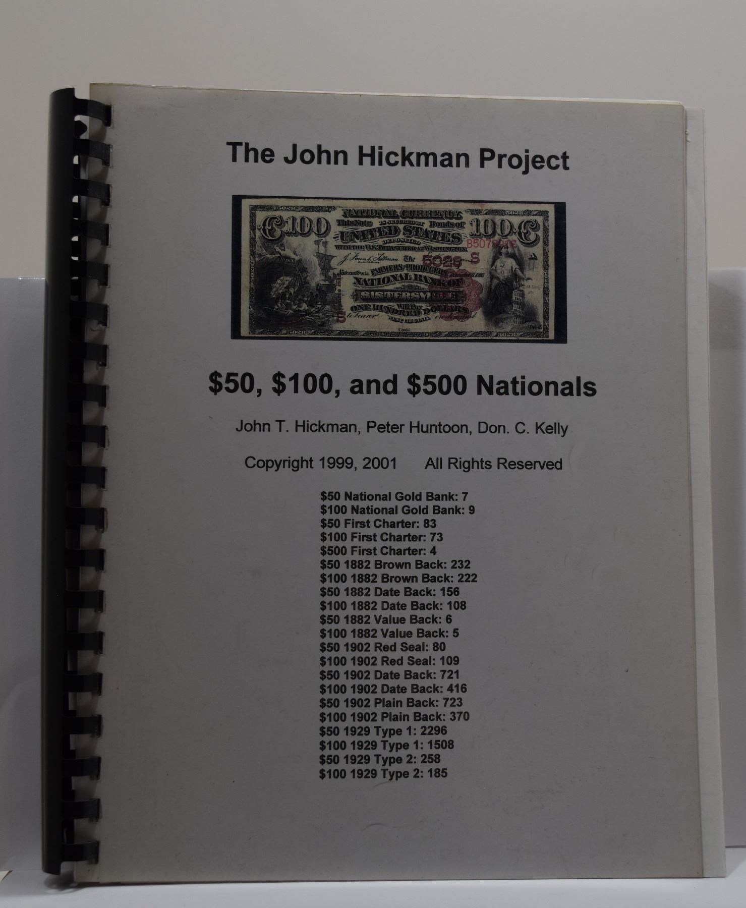 Hickman, John T. & Peter Huntoon & Don C. Kelly. THE JOHN HICKMAN PROJECT: $50, $100, AND $500 NATIONALS. John T. Hickman & Peter Huntoon & Don C. Kelly. 2001. 4to, 192 pages; Softcover; Comb binding.; Hickman, John T. & Don C. Kelly & Bill Kleinschmidt. THE JOHN HICKMAN PROJECT: ILLINOIS NATIONAL BANK NOTES. John T. Hickman & Don C. Kelly & Bill Kleinschmidt. 2003. 4to, 146 pages; Softcover; Comb binding.; Dean, Charles A. & John T. Hickman & Don C. Kelly. THE JOHN HICKMAN PROJECT: LAZY TWOS. Charles A. Dean & John T. Hickman & Don C. Kelly. 2001. 4to, 16 pages; Softcover; Comb binding.; Herzog, William & John T. Hickman & Don C. Kelly. THE JOHN HICKMAN PROJECT: MICHIGAN NATIONAL BANK NOTES. William Herzog & John T. Hickman & Don C. Kelly. 2003. 4to, 92 pages; Softcover; Comb binding.; Hickman, John T. & Don C. Kelly. THE JOHN HICKMAN PROJECT: NEW YORK NATIONAL BANK NOTES. John T. Hickman & Don C. Kelly. 2003. 4to, 215 pages; Softcover; Comb binding.; Hickman, John T. & Don C. Kelly. THE JOHN HICKMAN PROJECT: SERIAL NUMBER 1 NATIONALS. John T. Hickman & Don C. Kelly. 2001. 4to, 67 pages; Softcover; Comb binding.; Hickman, John T. & Don C. Kelly. THE JOHN HICKMAN PROJECT: SERIES 1882 VALUE BACKS. John T. Hickman & Don C. Kelly. 2001. 4to, 41 pages; Softcover; Comb binding.; Hickman, John T. & Don C. Kelly. THE JOHN HICKMAN PROJECT: SERIES 1902 RED SEALS. John T. Hickman & Don C. Kelly. 2001. 4to, 89 pages; Softcover; Comb binding. Subject: Paper Money - US