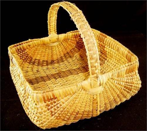 Hickory Splint Basket, Two Tone with Darkwood Weaving, 6" x 14" x 12"