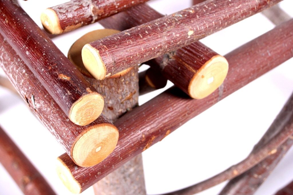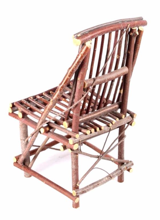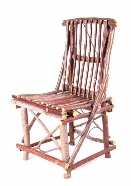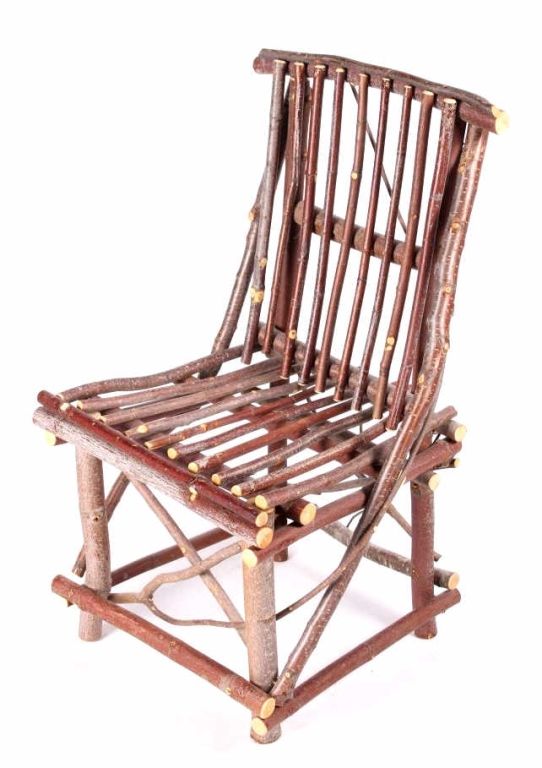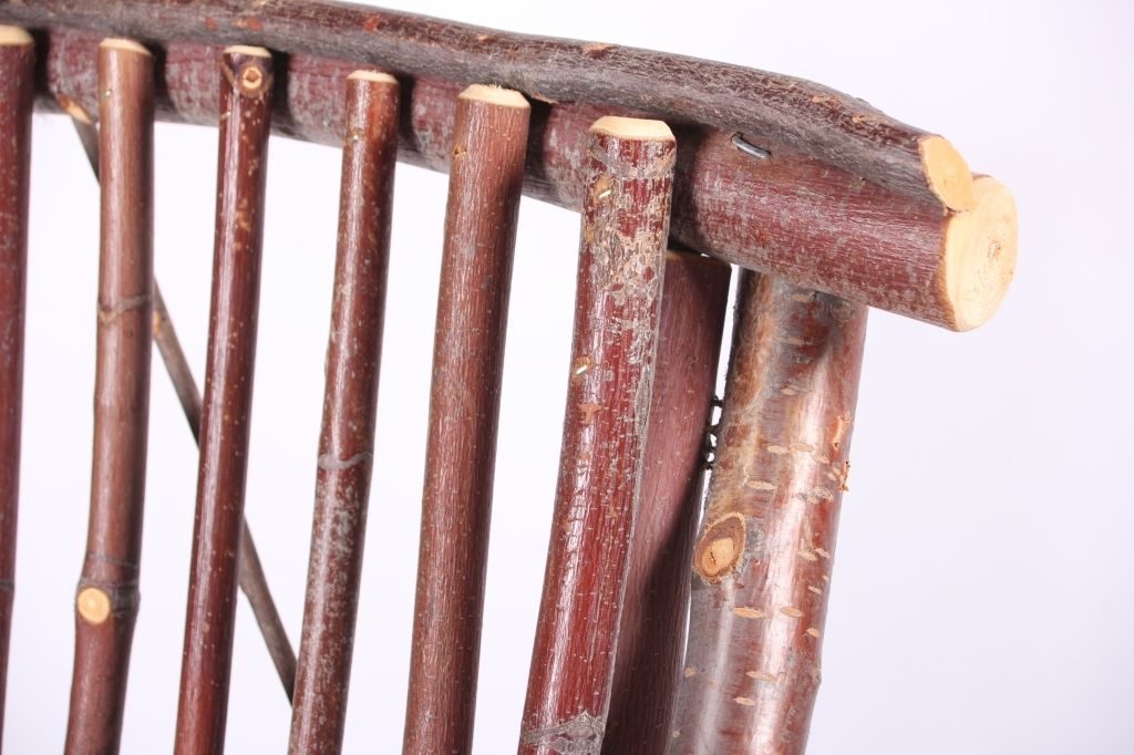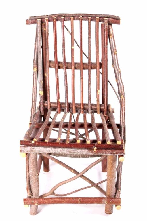 The chair features an all hickory twig and branch design chair. All of the hickory logs have a wonderful smell and show the bark. This chair measures 38" tall 20"x20"