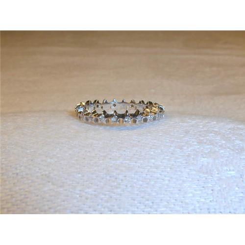 You are looking at a lovely 18K white gold stacking ring with diamonds. This authentic piece is by the famous jewelry designer Hidalgo. It has an alternating design of diamond stars and gold stars. There are 12 brilliant round diamonds with a total approximate weight of .08 carats. Stunning on its own, this stackable piece may also be worn as a complete set with the Moon and Star ring or any of the Hidalgo rings available separately. The band measures a bit under 1/8 of an inch wide. It is a size 6.75. The ring weighs 2 grams. It is in mint condition.