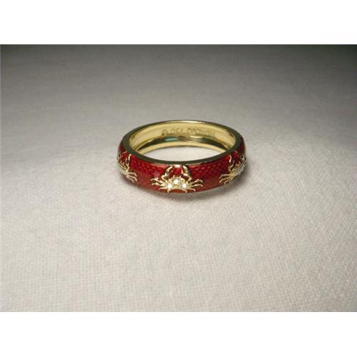 You are looking at an 18K yellow gold red enameled band with diamonds. This authentic piece is by the famous jewelry designer Hidalgo. It features 3 yellow gold crabs and 3 brilliant round diamonds measuring 1 mm each. The band measures 3/16 of an inch wide. It is a size 6.5. Sizing is available. The ring weighs 6.2 grams. It is in mint condition.