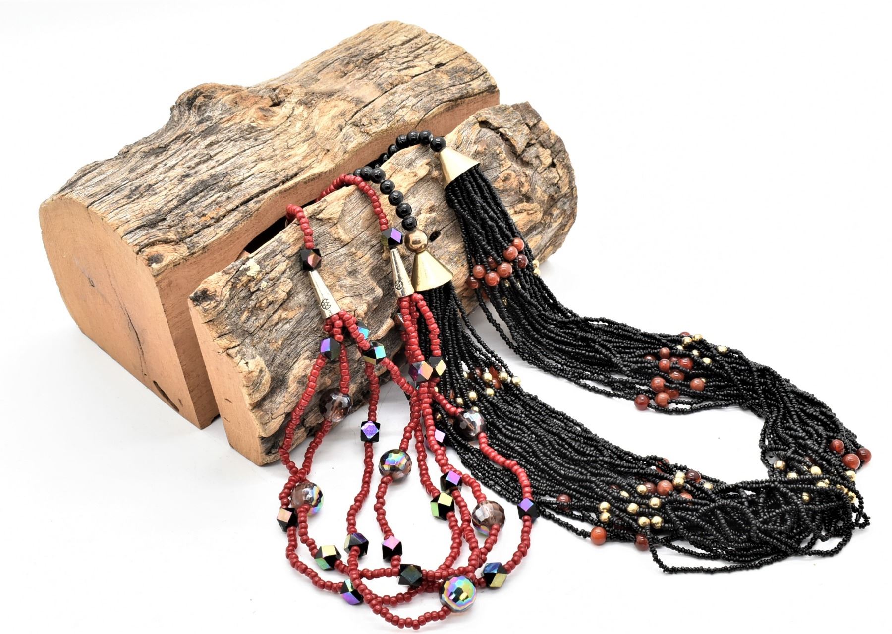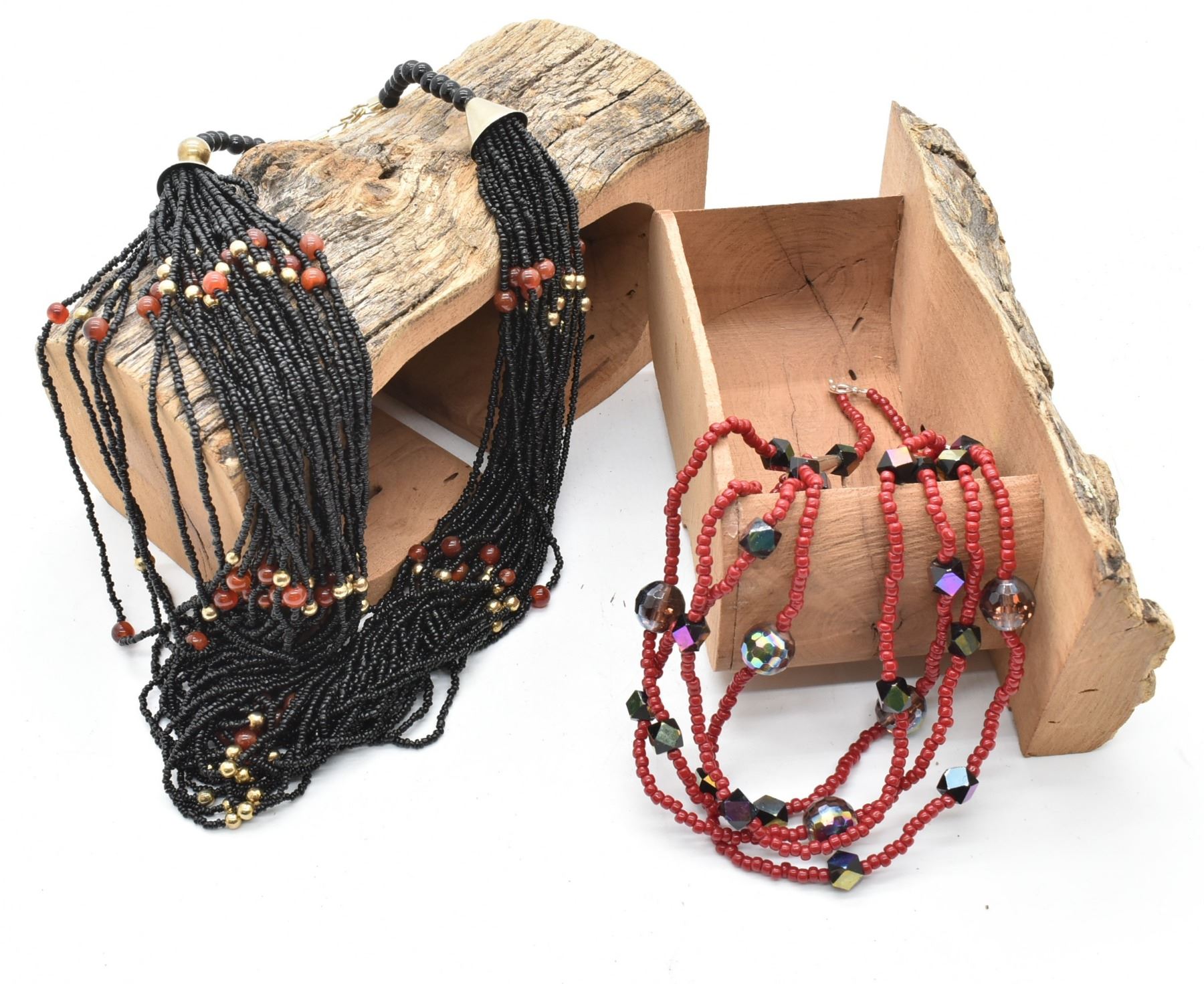 Hidden Log Jewelry Box and 2 Necklaces, box measures 6.5'' x 8''