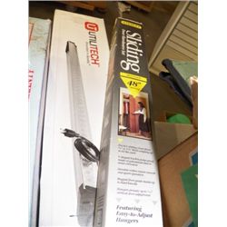 2 1/2 foot standing Santa, 3 sealed vintage jars misc. silverware and tray. tub misc. dishware, glassware, Box Lot Misc. novelty items and more. tub misc. dolls and toys