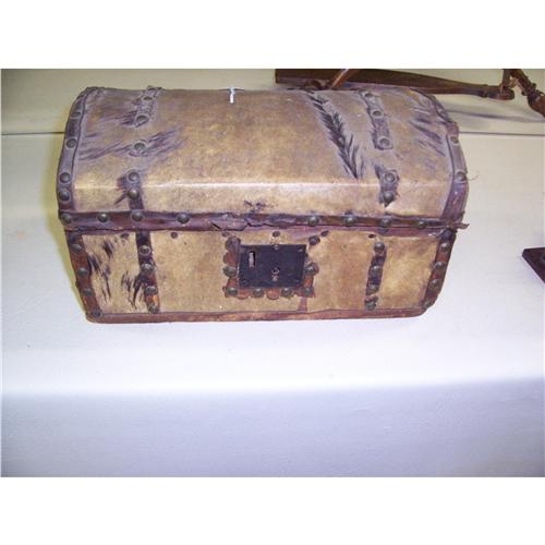 Hide Covered Document Box Lined With Early Newspaper 12" L