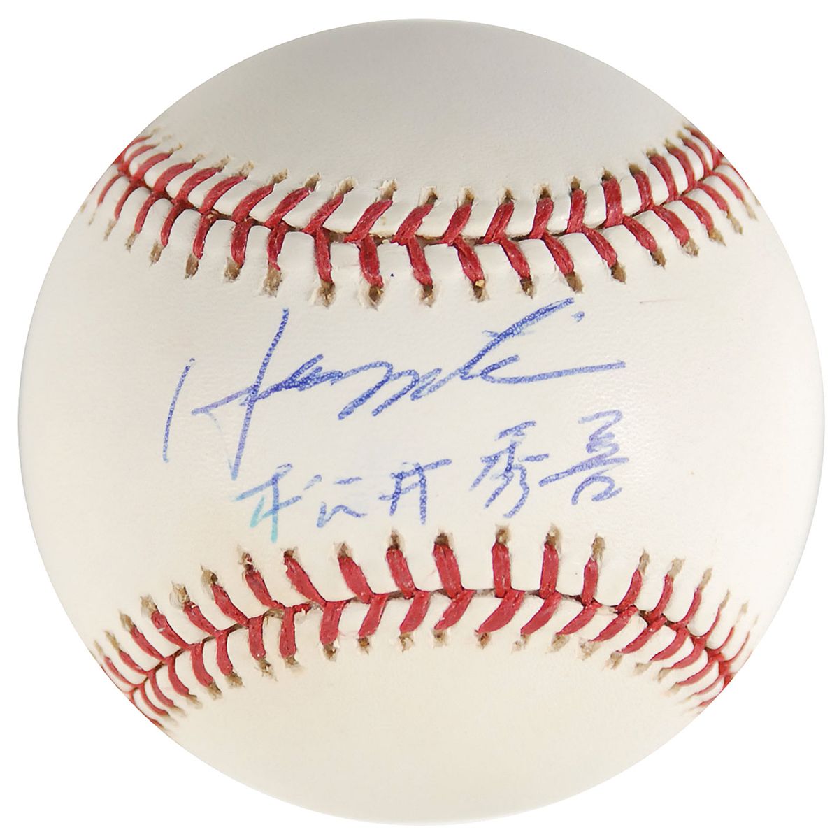 Official Rawlings Major League (Selig) baseball signed in blue ballpoint on the sweet spot in English and Japanese. In fine condition.