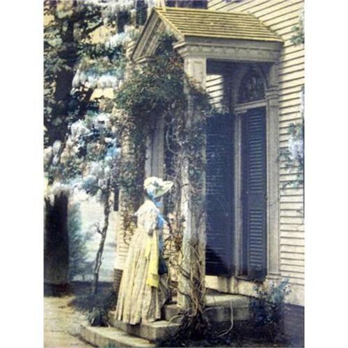 </font></strong>Great hand tinted photo by Nutting contemporary Charles Higgins measures 9.25" x 12.25" in frame. Photo measures 4.5 x 6.5". Reflection on photo is due to camera and not on photo. There is a water stain that runs 3" x 1" in lower left corner and another in lower right corner that is 2" x 1/2" and in middle bottom 1.5" x .25". Apart from this, great condition with no damage to title, signature or photo.</font>