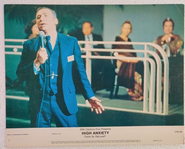 High Anxiety (20th Century Fox, 1977) lobby card. Comedy, Parody. Starring Mel Brooks, Madeline Kahn, Cloris Leachman, Harvey Korman, Dick Van Patten, Ron Carey, Howard Morris. Directed by Mel Brooks. Light edge wear, light creases, light stains. Excellent. (11"x14").
