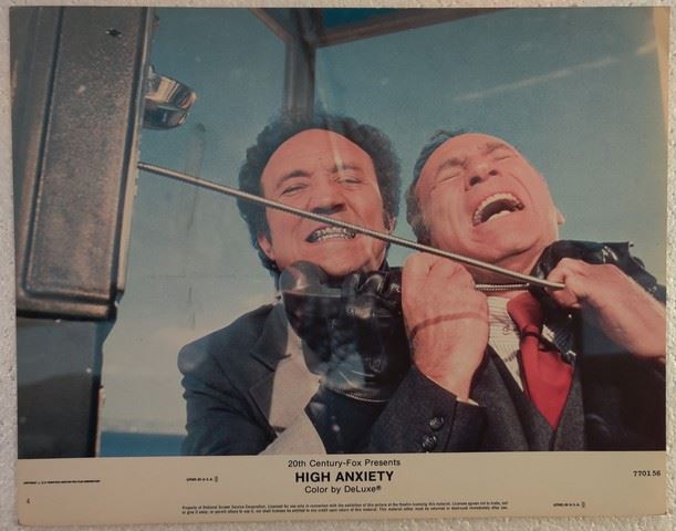 High Anxiety (20th Century Fox, 1977) lobby card. Comedy, Parody. Starring Mel Brooks, Madeline Kahn, Cloris Leachman, Harvey Korman, Dick Van Patten, Ron Carey, Howard Morris. Directed by Mel Brooks. Light edge wear, creases. Excellent. (11"x14").