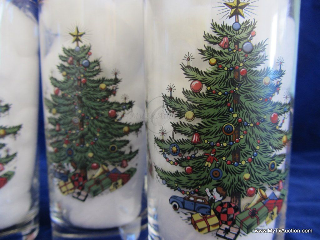 Highball glasses have the Cuthbertson Christmas tree. They are a 12 oz. glass, and measure 6.25" tall and 2.75" across.