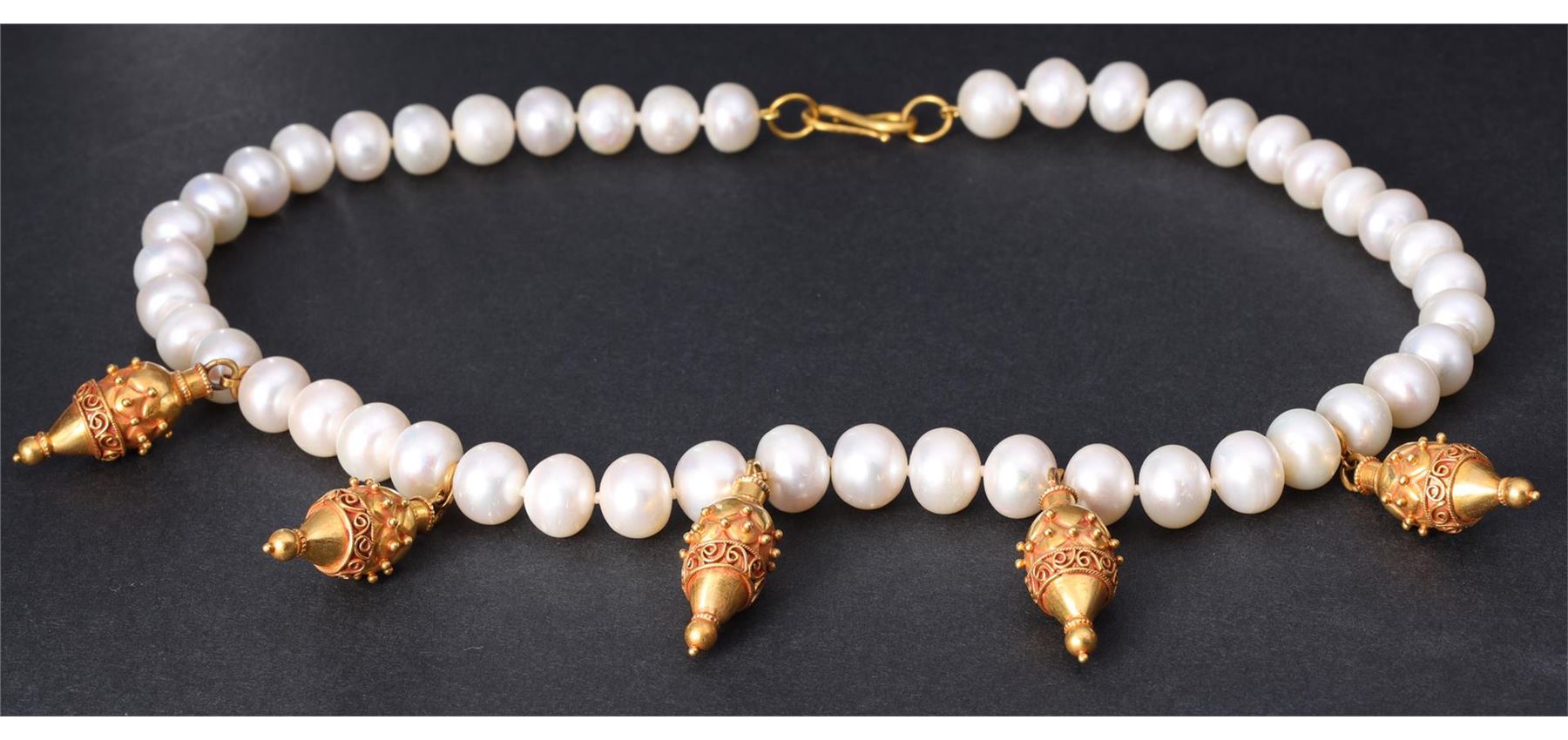 22K Gold & Pearl Necklace. Total weight of 68.5 gm. Estimated retail value $3,600.
