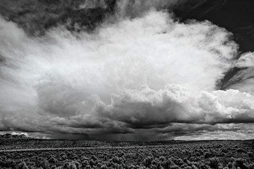 Artist: Travis Stinson. Title: High Desert Storm. Size: 20" x 30" x 1.5". Medium: Canvas. Description: A desert storm marching across the landscape.