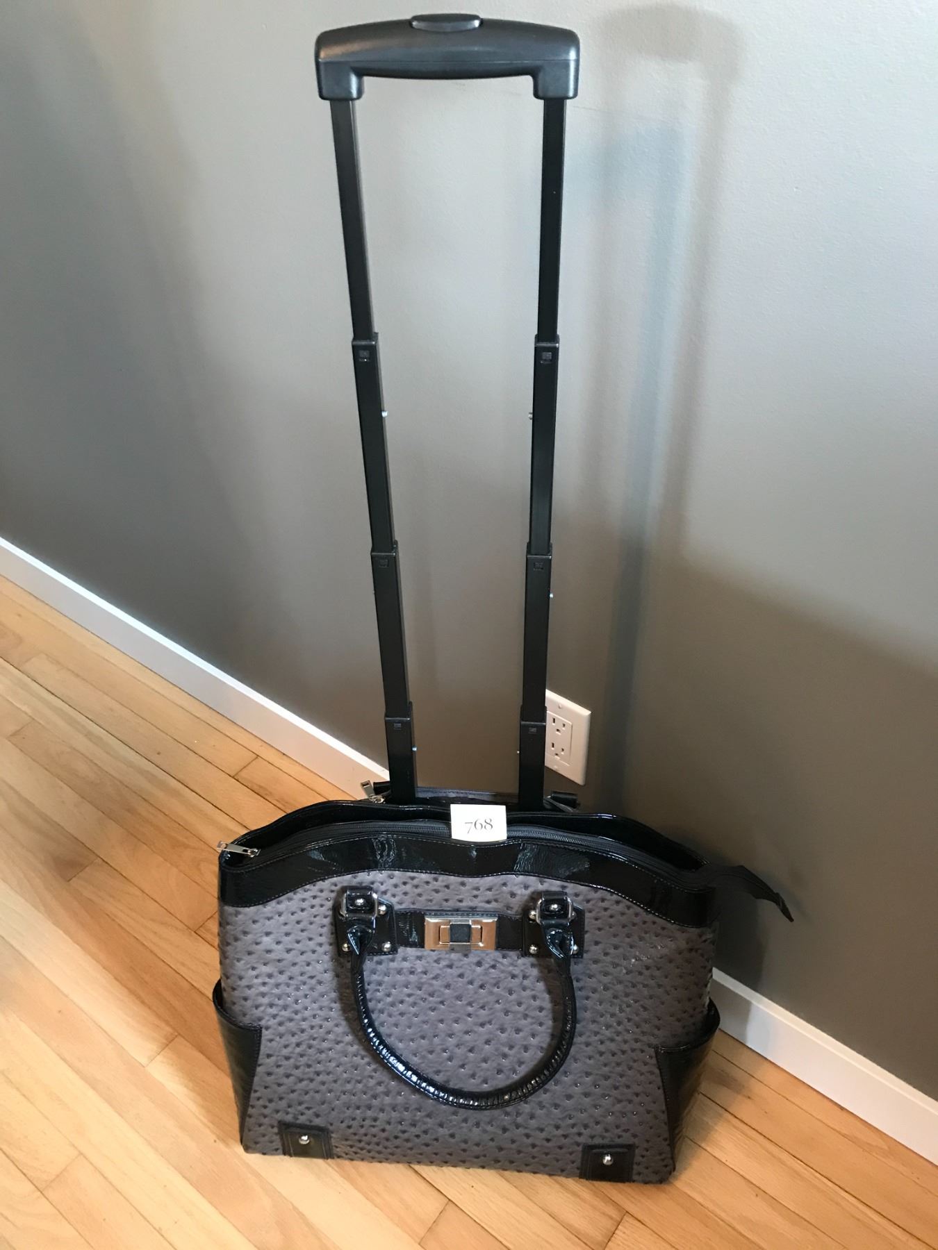 High-End Cabrelli & Co Rolling Black Tote Carry on with Wheels and Long Handle.