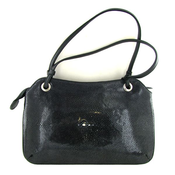 Excellent workmanship by high-end manufacturer made from multiple polished hides; main compartment with multiple smaller compatrments inside; 11.5" wide; comes with protective storage bag