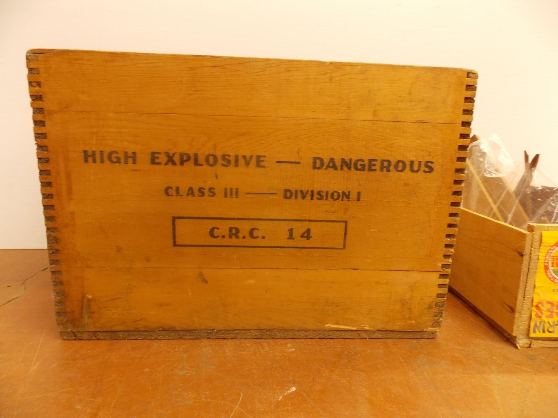 *High Explosive wooden crate and other wooden crate filled with misc