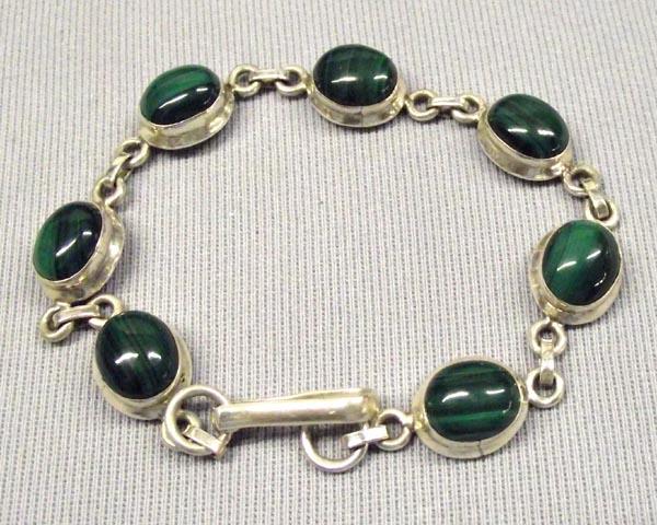 High Fashion Sterling Malachite Bracelet. Measures approx. 8'' end to end. Malachite sterling silver links measure 1"L x 5/8"W. Buyers Pay Actual Shipping and Handling Charges(see terms and conditions for more information).