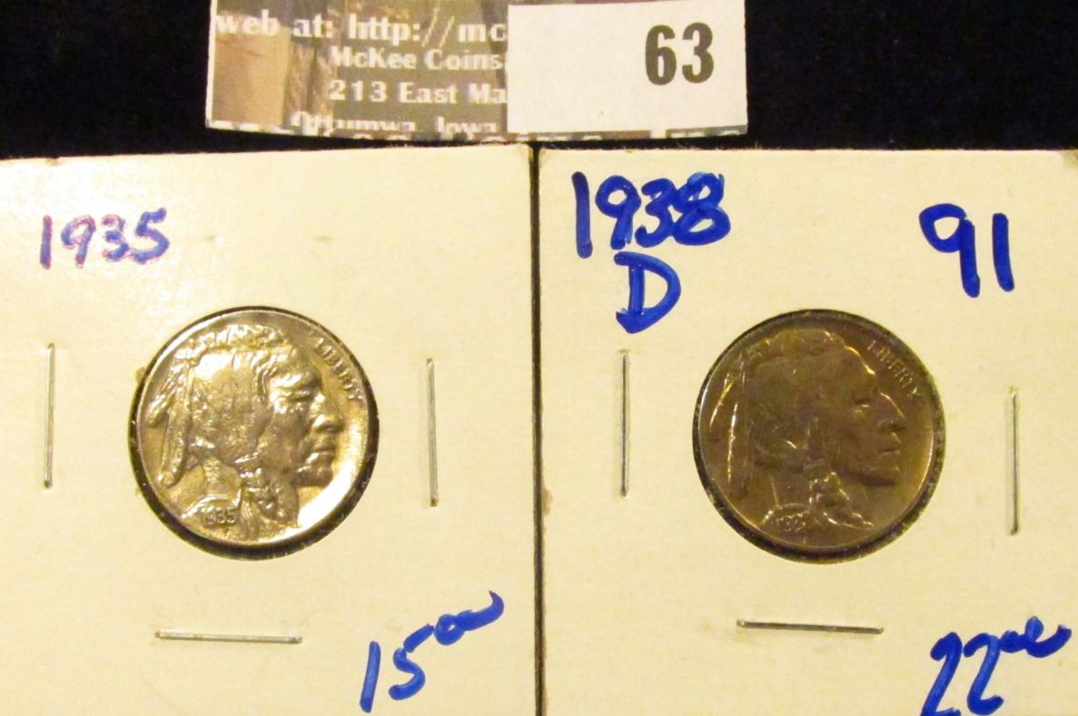 High Grade 1935 P and 1938-D Buffalo Nickels