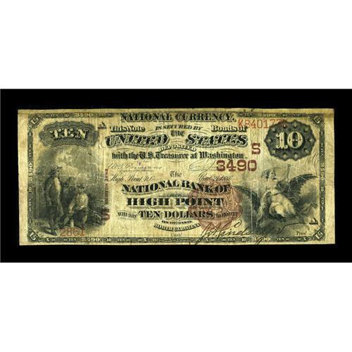 <B>High Point, NC</B></I> - $10 1882 Brown Back Fr. 482 <B>The NB of High Point</B></I> Ch. # (S)3490<BR>An extremely rare High Point bank which issued Brown Backs and Red Seals only before liquidating in 1907. Just two examples are known, both Brown Backs, with the only previous offering of any kind from this institution coming back in 1996. <B>Very Good-Fine,</B></I> with the top margin restored.<BR><BR><b>Shipping:</b> Coins & Currency (<a target="_blank" href="http://www.heritageauctions.com/common/shipping.php">view shipping information</a>)