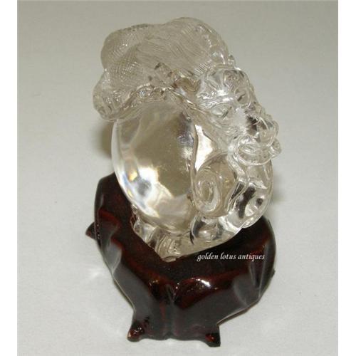 </font></strong>This is a beautiful high quality crystal. It is a dragon surrounding a crystal ball. The carving and the style of the dragon is very unique and pretty. The crystal ball is so clear and round. The stand is custom made to fit the piece.