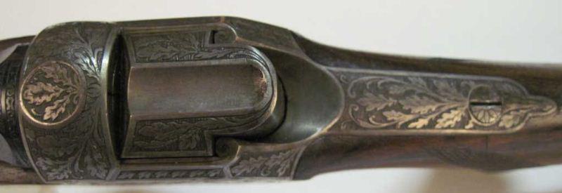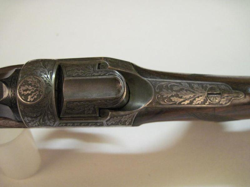 round to octagonal BBL with hand filed raised milled rib, select walnut stock, carved horn pistol