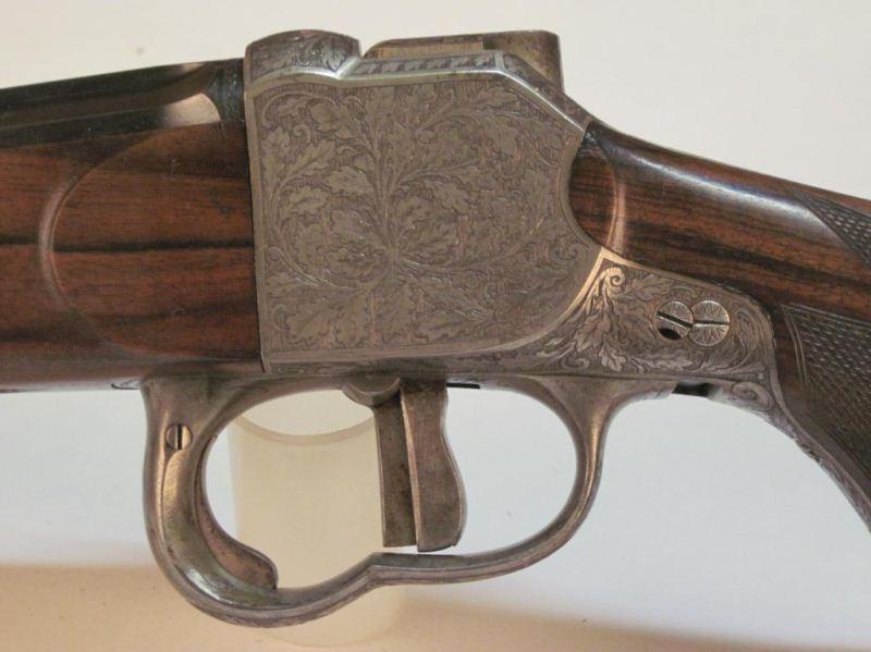 High Quality German Single Shot Falling Block Rifle with Heeren marked release. Signed