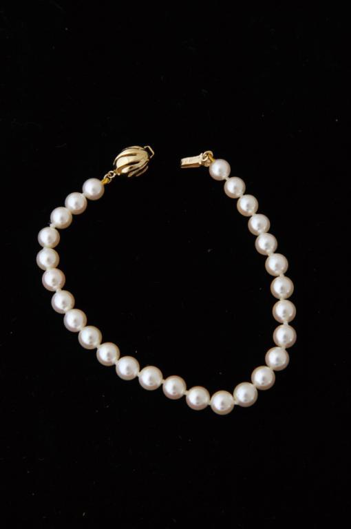High Quality Ladies Fine Cultured Pearls in AAA rose pink color, averaging 6.00-6.50 mm in diameter on 14 karat yellow gold clasp. Retail $1,450.00.